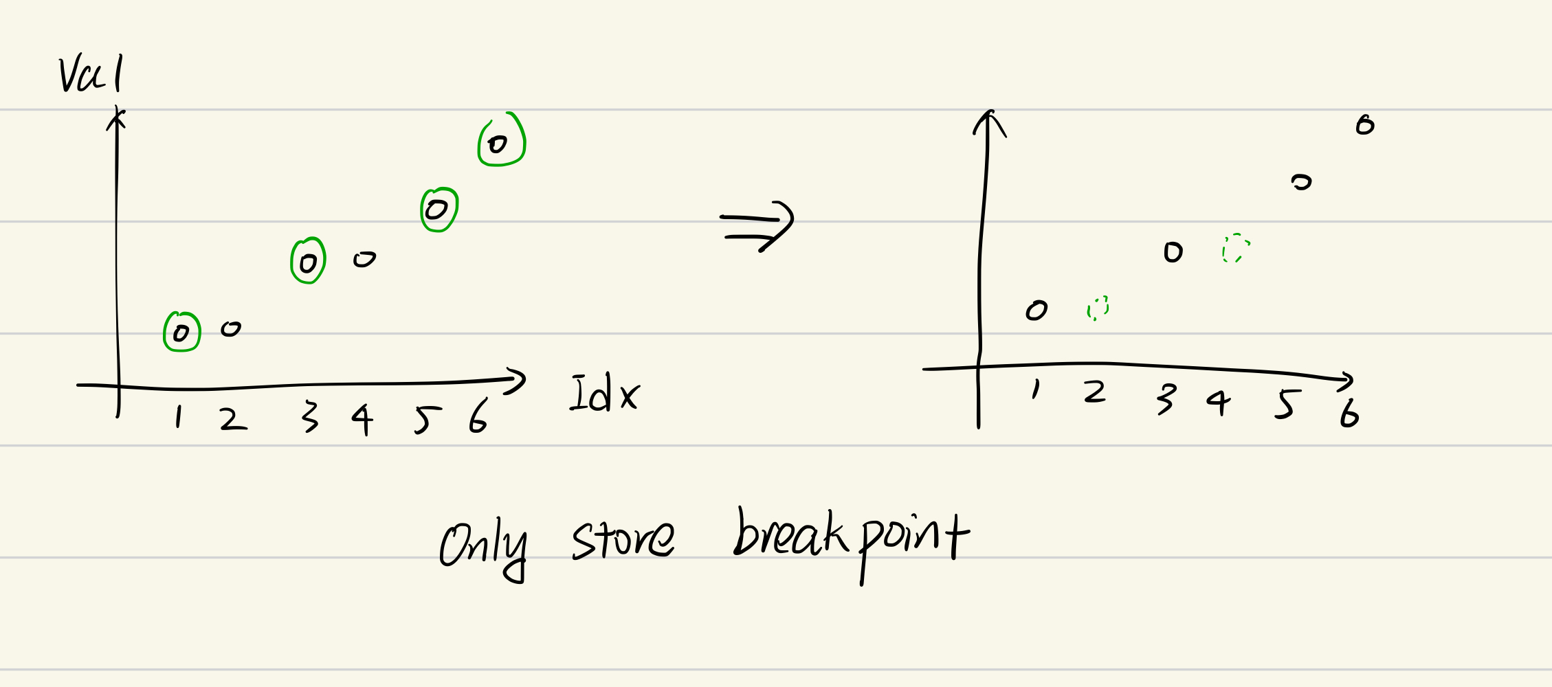 This operation should return the actual value at an index based on that “compressed” breakpoint info. Given an targetIdx.